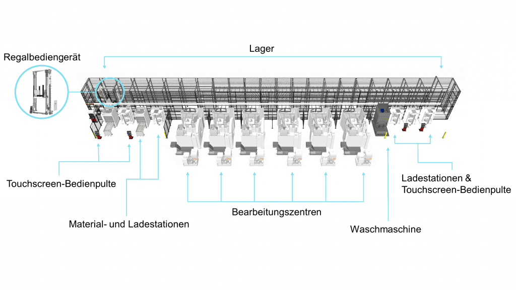 Das Herzstück des Virtual FMS ist der Station Commander: eine Komponente, die Manufacturing Management Software (MMS) hostet und sämtliche Fertigungsaktivitäten innerhalb des Systems ermöglicht. Der Station Commander fungiert somit als Schnittstelle (Mensch-Maschine-Schnittstelle, HMI) zwischen Bediener und Hardware. Zudem kann er an weitere Komponenten angebunden werden, z. B. Bildschirme, um auf einen Blick zu sehen, welche Vorgänge im Fertigungssystem ausgeführt werden und was der Bediener tut. Ferner ist für die simultane Nutzung der MMS die Anbindung zusätzlicher PCs möglich.